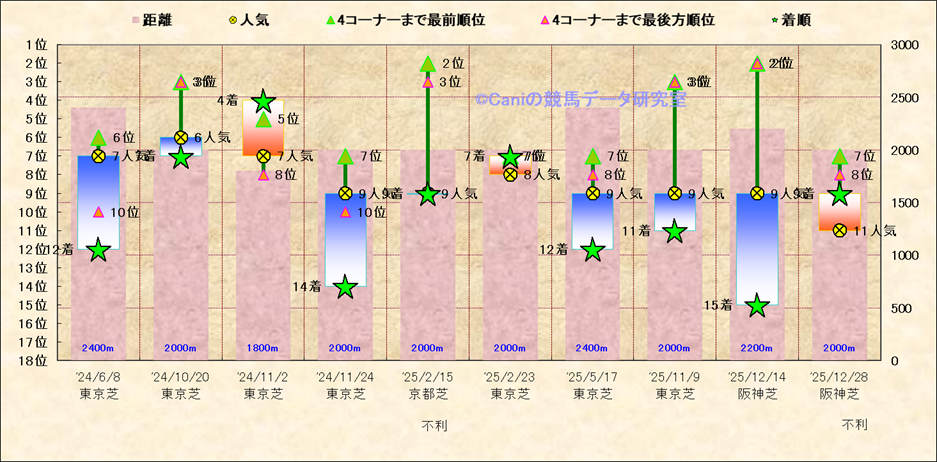 近10走 人気−着順-位置取りの推移 |