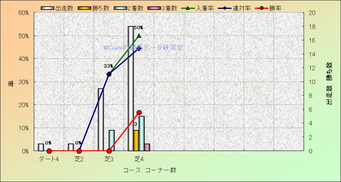コース、コーナー数別成績(平地) |