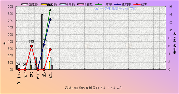 コース、最後の直線の高低差別成績(平地) |