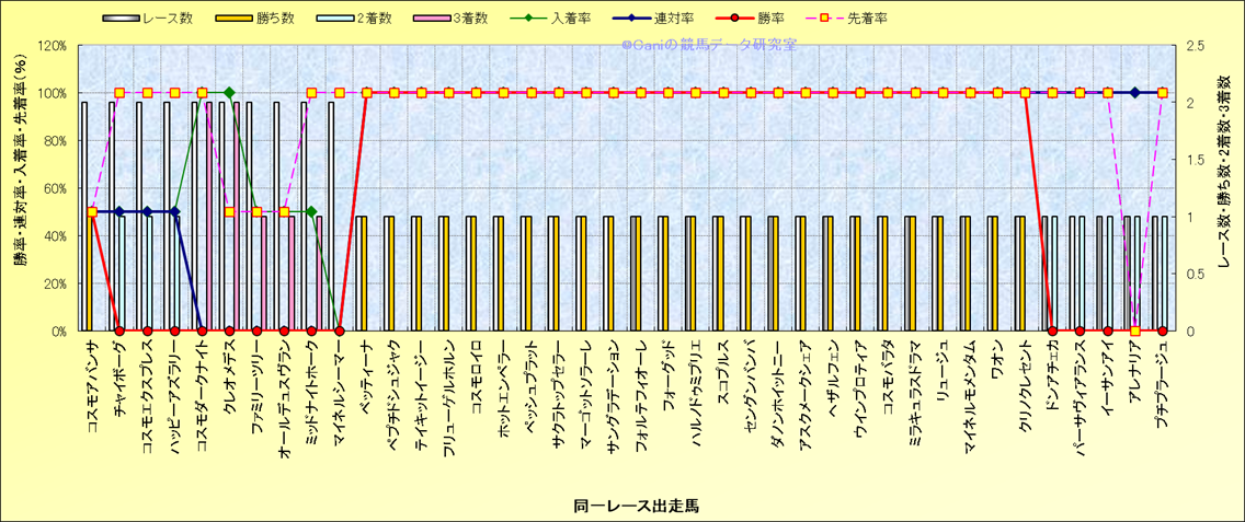 ライバル(相性)解析 同一レースに下記馬が出走した場合の成績とその馬に先着する先着率 |