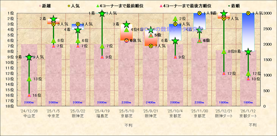 近10走 人気−着順-位置取りの推移 |