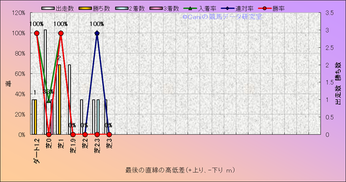コース、最後の直線の高低差別成績(平地) |