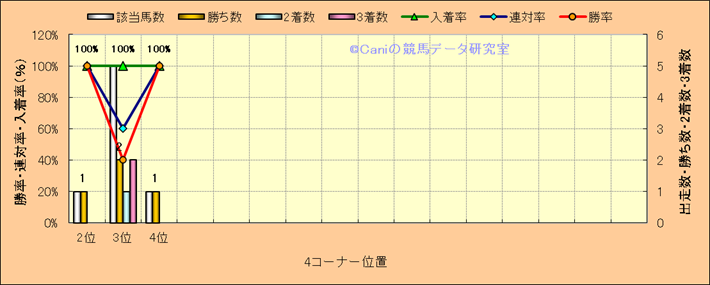 近走における4コーナーでの位置取りと上がり順位(頭数補正後) |