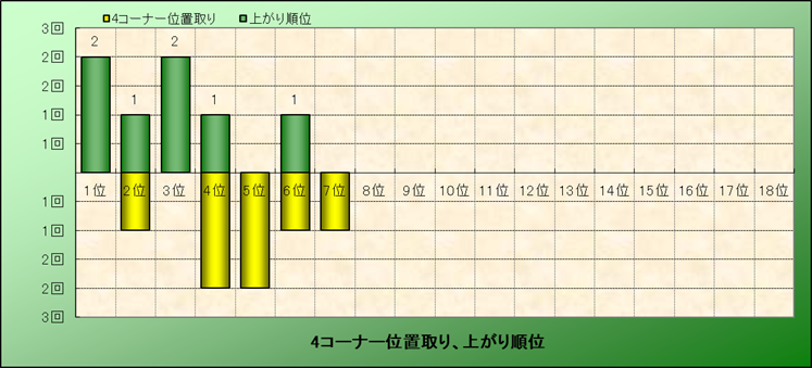 脚質解析 近20レースの4コーナーでの位置取りと上がり順位(頭数補正後) |