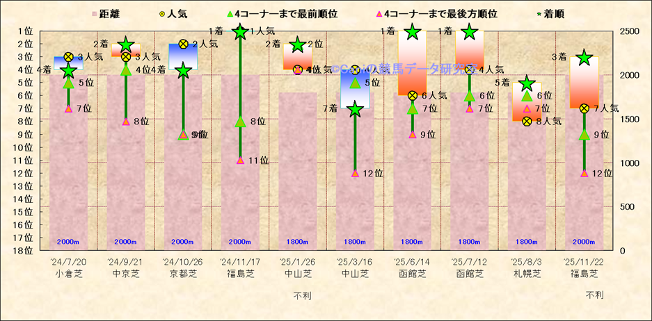 近10走 人気−着順-位置取りの推移 |