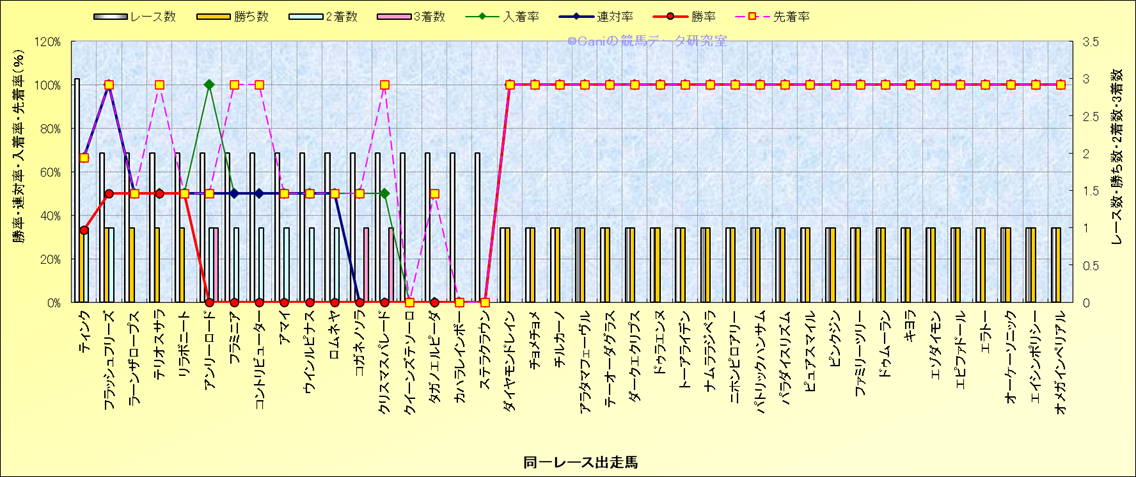 ライバル(相性)解析 同一レースに下記馬が出走した場合の成績とその馬に先着する先着率 |