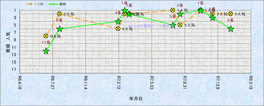 脚質解析 近20レースの4コーナーでの位置取りと上がり順位(頭数補正後) |