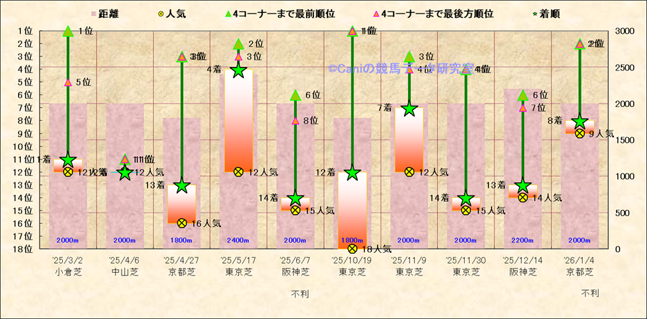 近10走 人気−着順-位置取りの推移 |