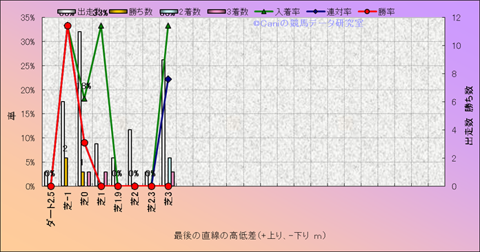 コース、最後の直線の高低差別成績(平地) |