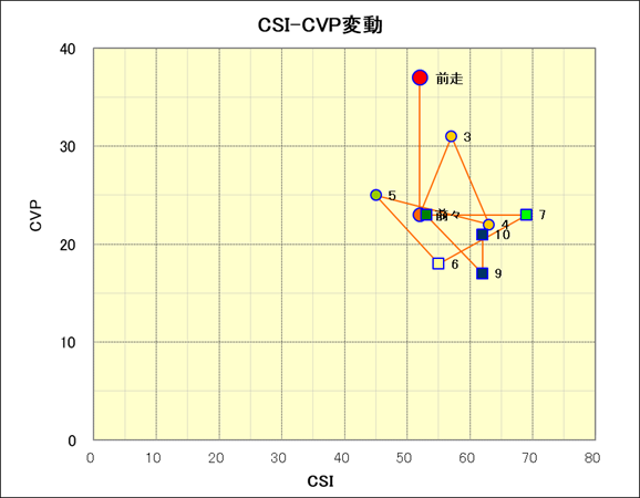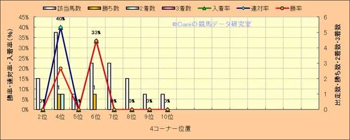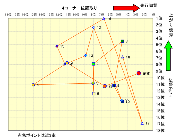 近走における4コーナーでの位置取りと上がり順位(頭数補正後) |