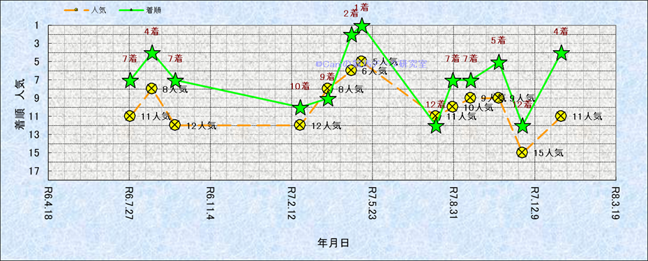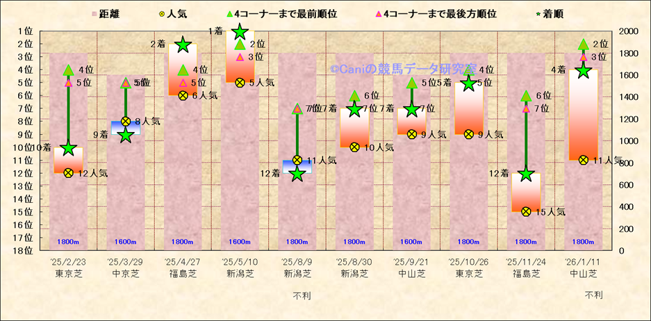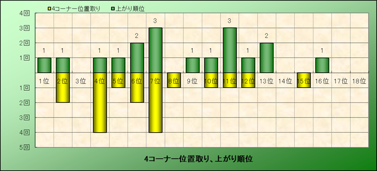 脚質解析 近20レースの4コーナーでの位置取りと上がり順位(頭数補正後) |
