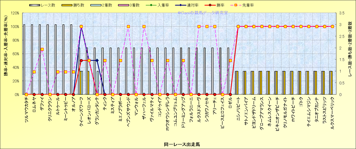 ライバル(相性)解析 同一レースに下記馬が出走した場合の成績とその馬に先着する先着率 |