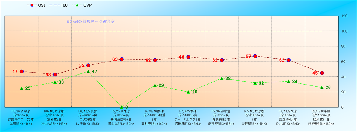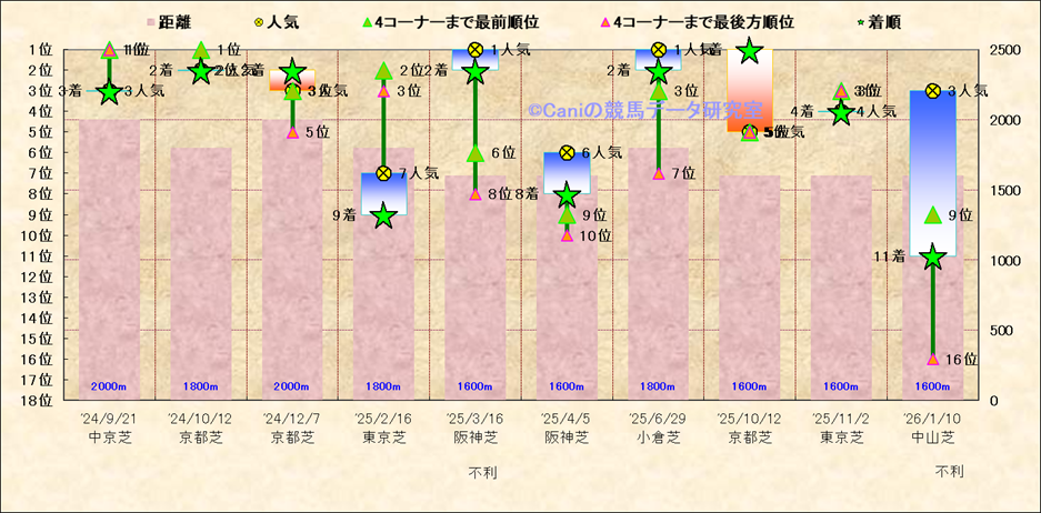 近10走 人気−着順-位置取りの推移 |
