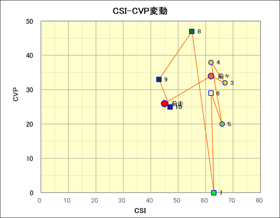 走行距離とCSI値の相関 |