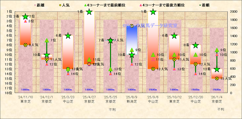 近10走 人気−着順-位置取りの推移 |