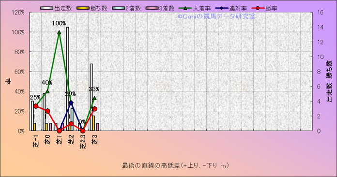 コース、最後の直線の高低差別成績(平地) |