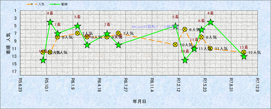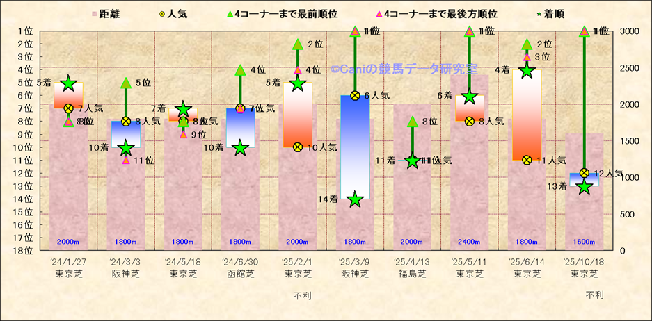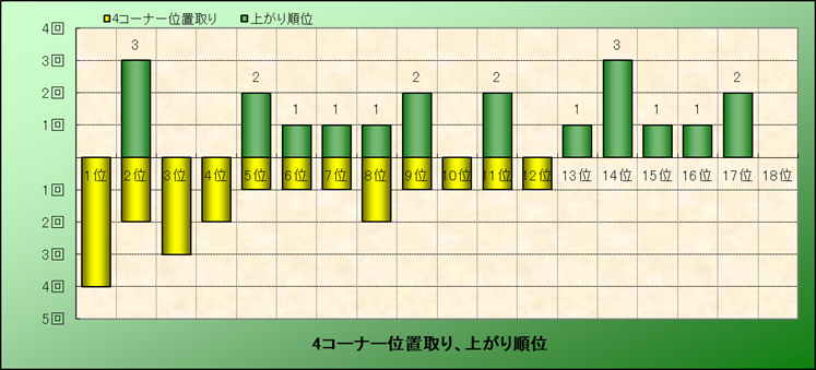 脚質解析 近20レースの4コーナーでの位置取りと上がり順位(頭数補正後) |