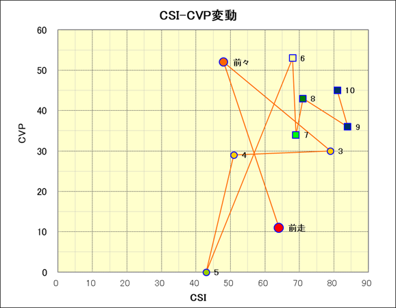 近走における4コーナーでの位置取りと上がり順位(頭数補正後) |