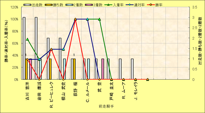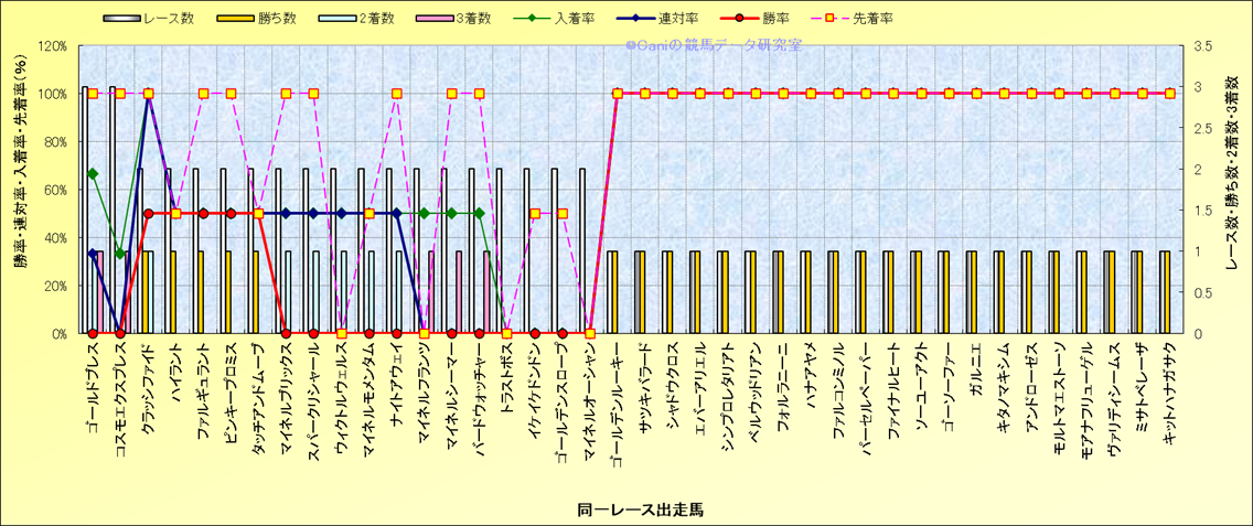 ライバル(相性)解析 同一レースに下記馬が出走した場合の成績とその馬に先着する先着率 |