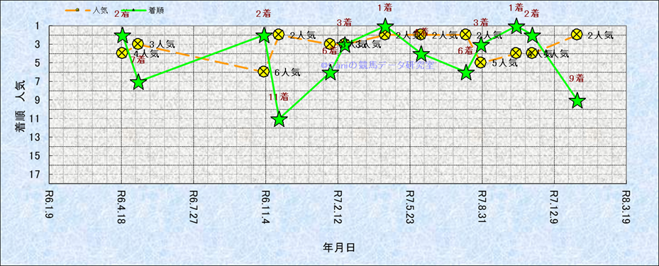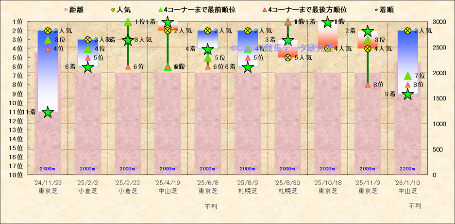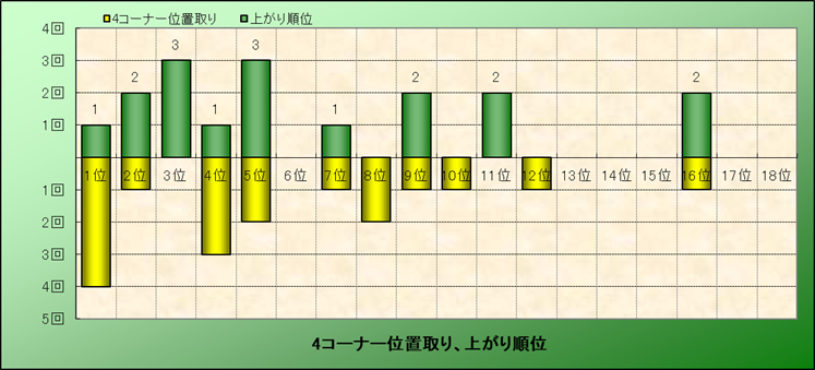 脚質解析 近20レースの4コーナーでの位置取りと上がり順位(頭数補正後) |