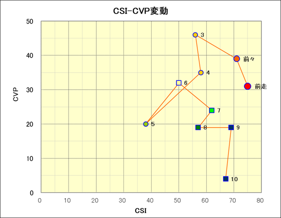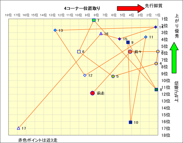近走における4コーナーでの位置取りと上がり順位(頭数補正後) |
