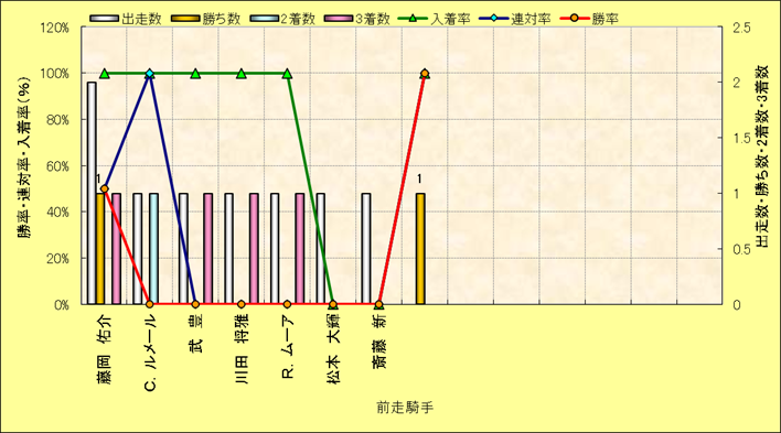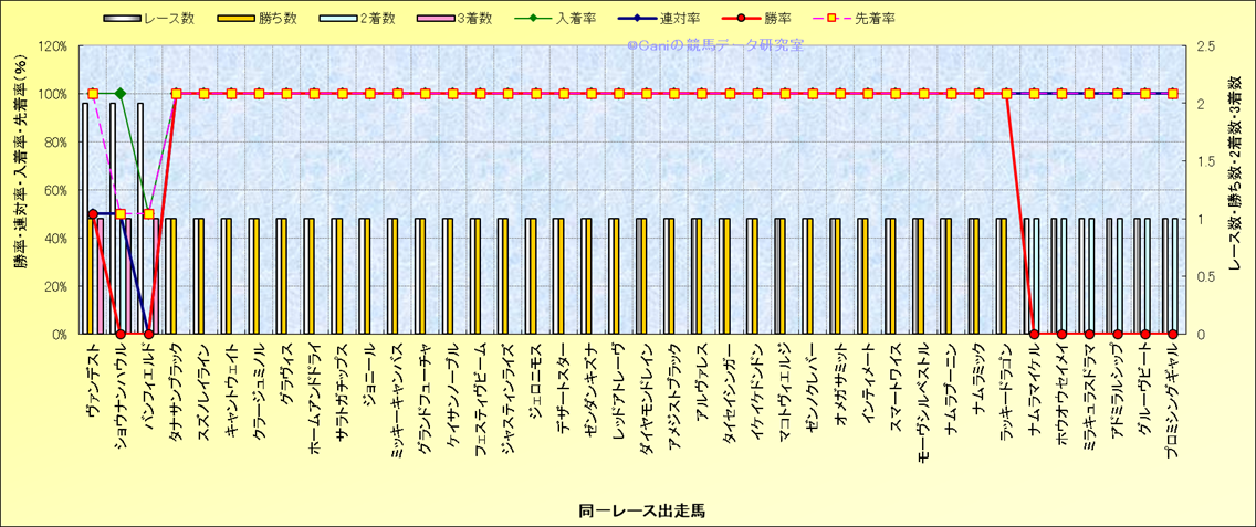 ライバル(相性)解析 同一レースに下記馬が出走した場合の成績とその馬に先着する先着率 |