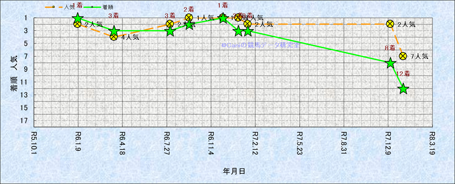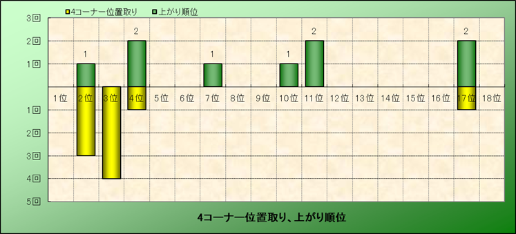 脚質解析 近20レースの4コーナーでの位置取りと上がり順位(頭数補正後) |