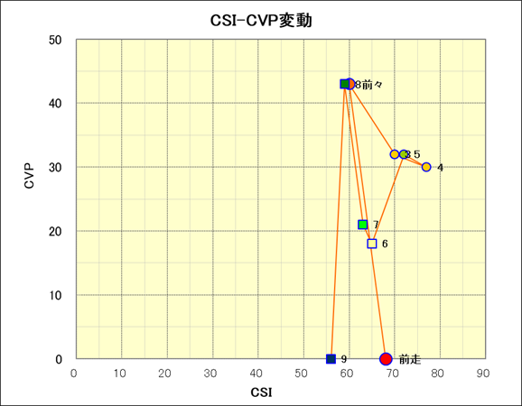 近走における4コーナーでの位置取りと上がり順位(頭数補正後) |
