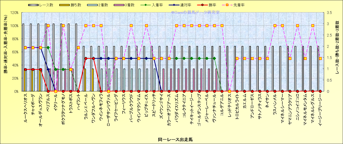 ライバル(相性)解析 同一レースに下記馬が出走した場合の成績とその馬に先着する先着率 |