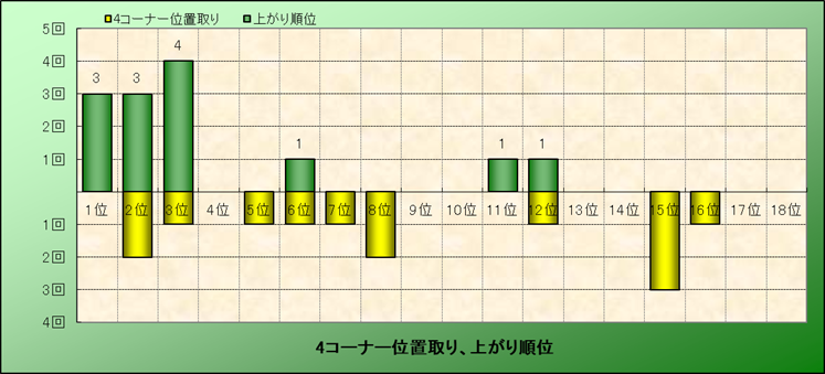 脚質解析 近20レースの4コーナーでの位置取りと上がり順位(頭数補正後) |