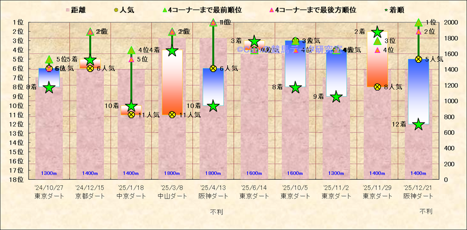 近10走 人気−着順-位置取りの推移 |