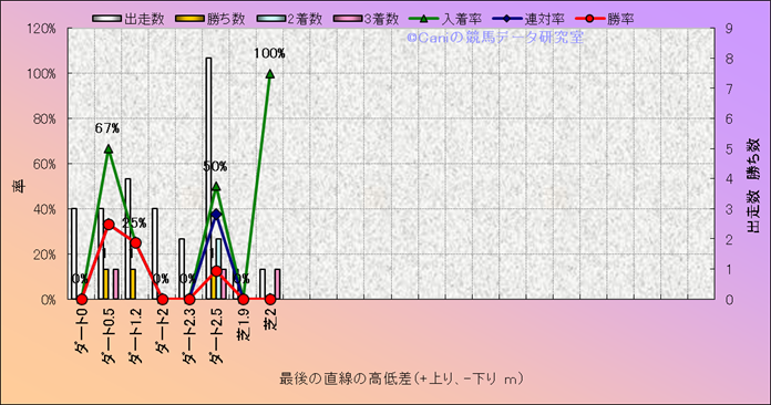 コース、最後の直線の高低差別成績(平地) |