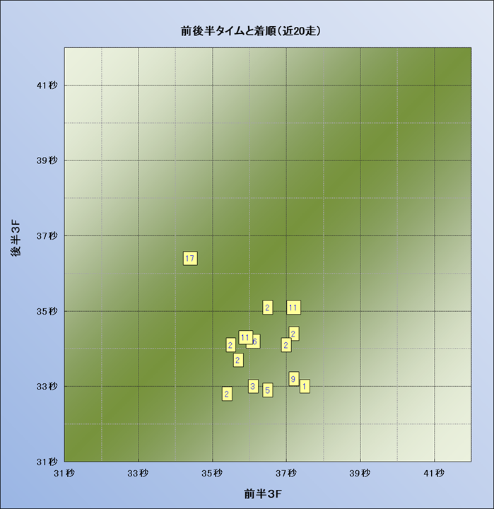 脚質解析 近20レースの4コーナーでの位置取りと上がり順位(頭数補正後) |