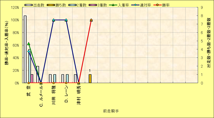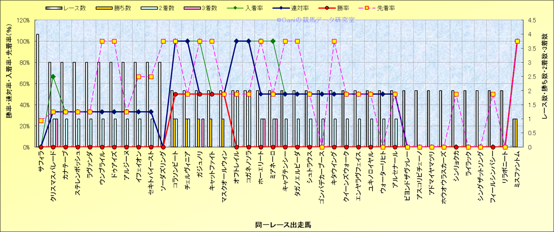 ライバル(相性)解析 同一レースに下記馬が出走した場合の成績とその馬に先着する先着率 |