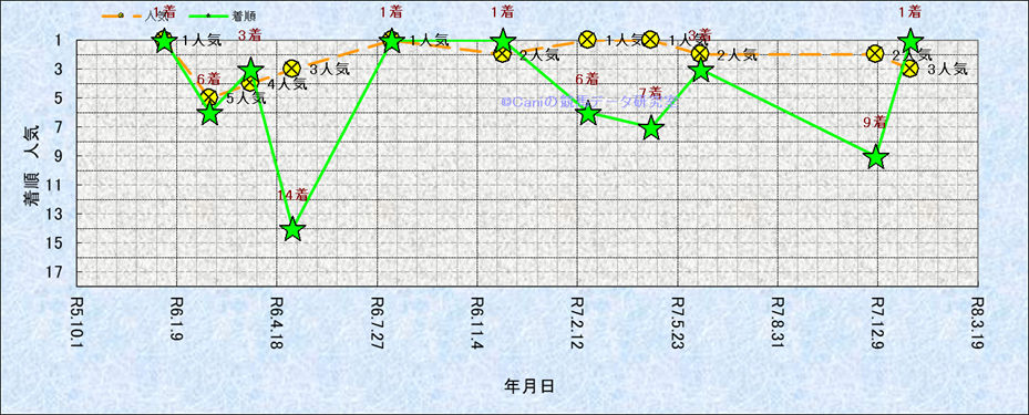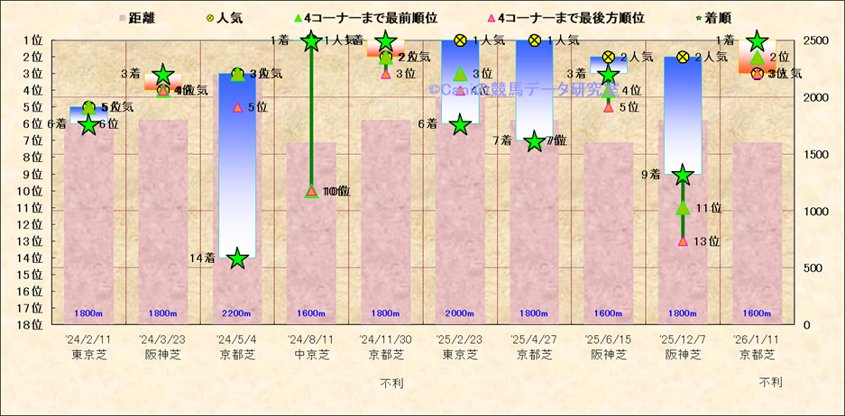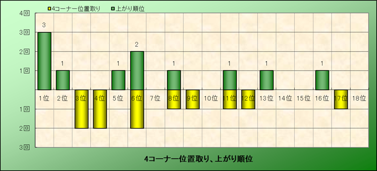 脚質解析 近20レースの4コーナーでの位置取りと上がり順位(頭数補正後) |