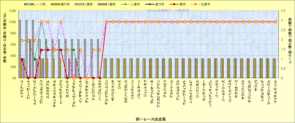 ライバル(相性)解析 同一レースに下記馬が出走した場合の成績とその馬に先着する先着率 |