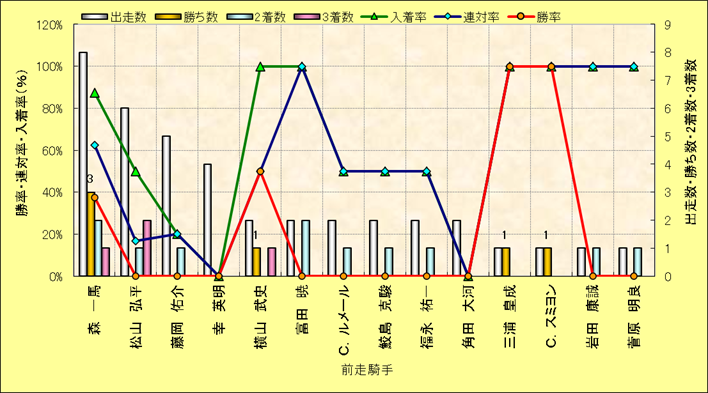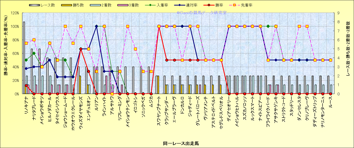 ライバル(相性)解析 同一レースに下記馬が出走した場合の成績とその馬に先着する先着率 |