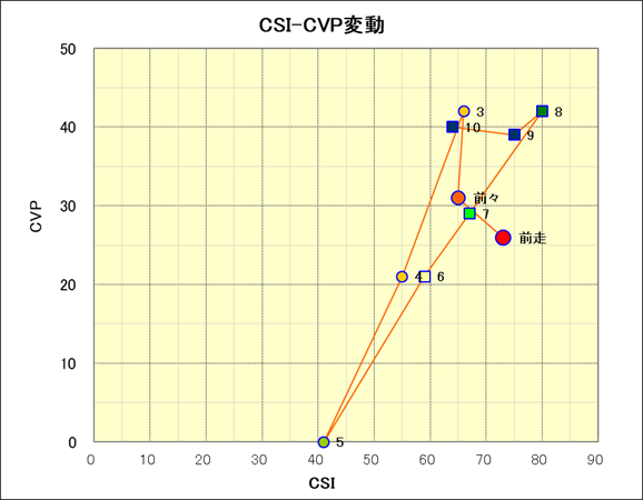近走における4コーナーでの位置取りと上がり順位(頭数補正後) |