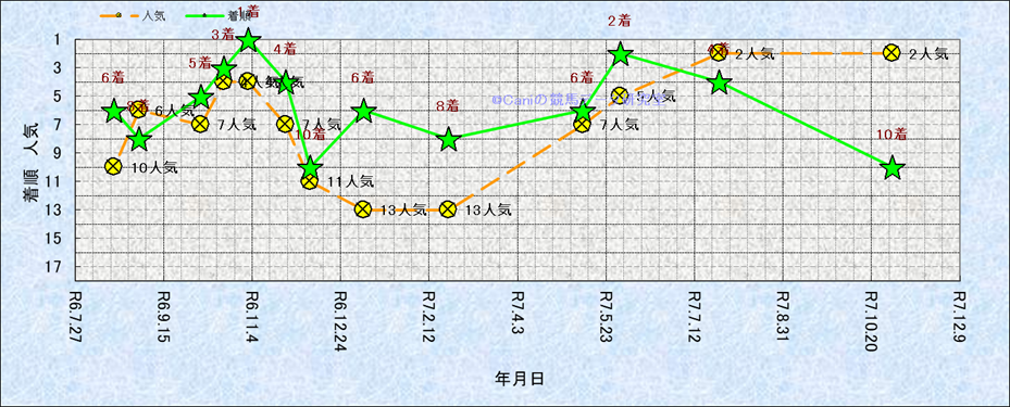 近走における4コーナーでの位置取りと上がり順位(頭数補正後) |