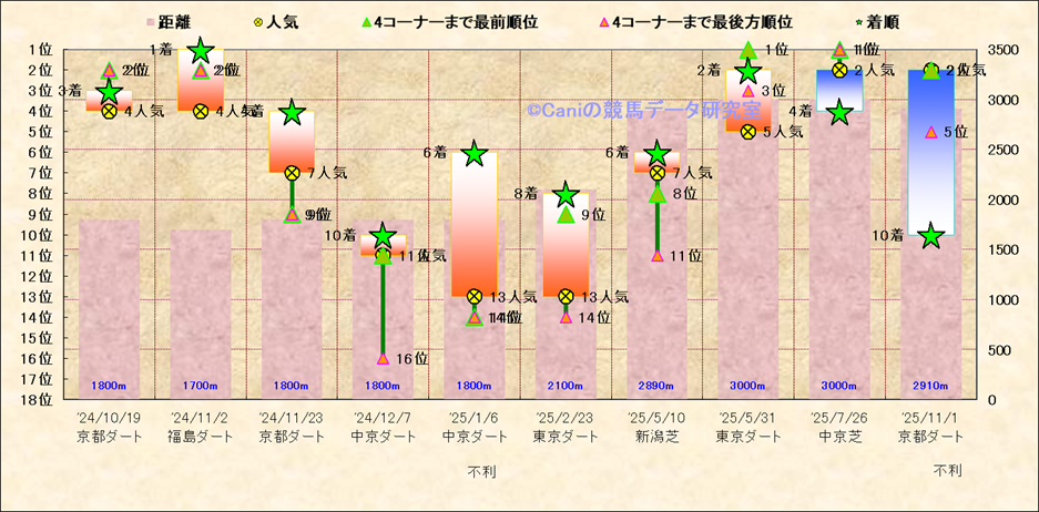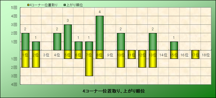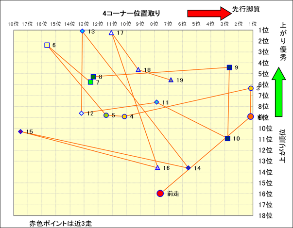 脚質解析 近20レースの4コーナーでの位置取りと上がり順位(頭数補正後) |
