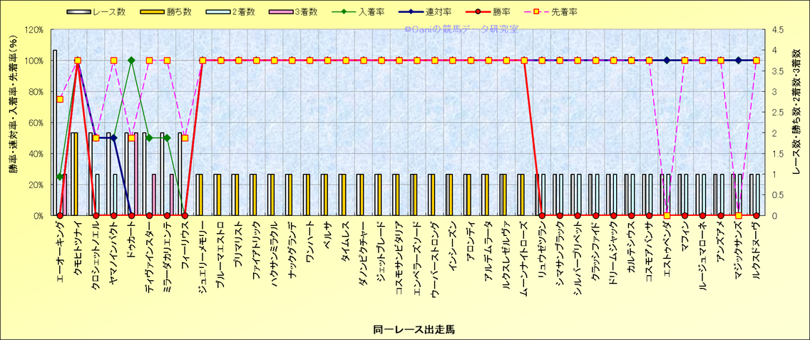 ライバル(相性)解析 同一レースに下記馬が出走した場合の成績とその馬に先着する先着率 |