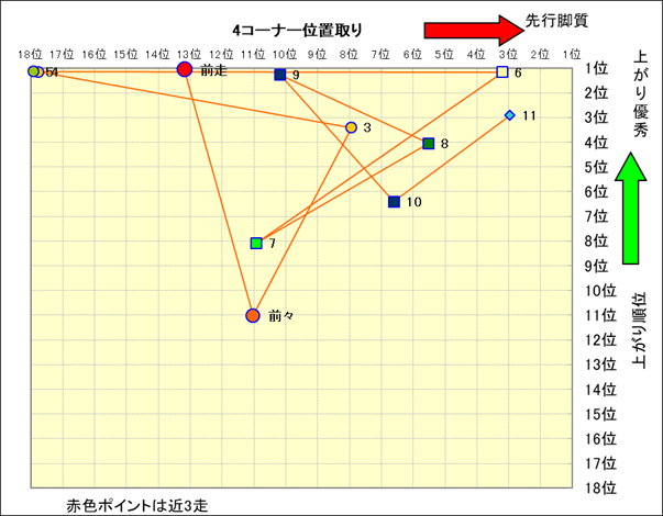 近走における4コーナーでの位置取りと上がり順位(頭数補正後) |