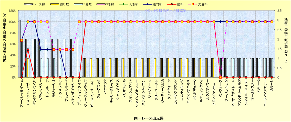 ライバル(相性)解析 同一レースに下記馬が出走した場合の成績とその馬に先着する先着率 |