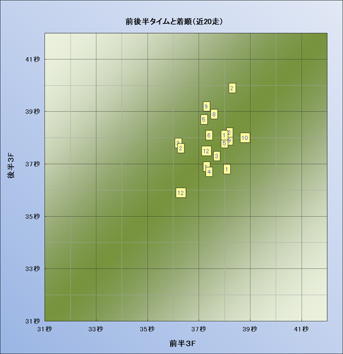 脚質解析 近20レースの4コーナーでの位置取りと上がり順位(頭数補正後) |