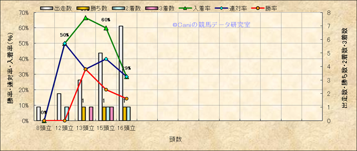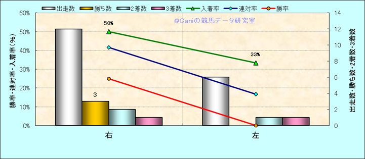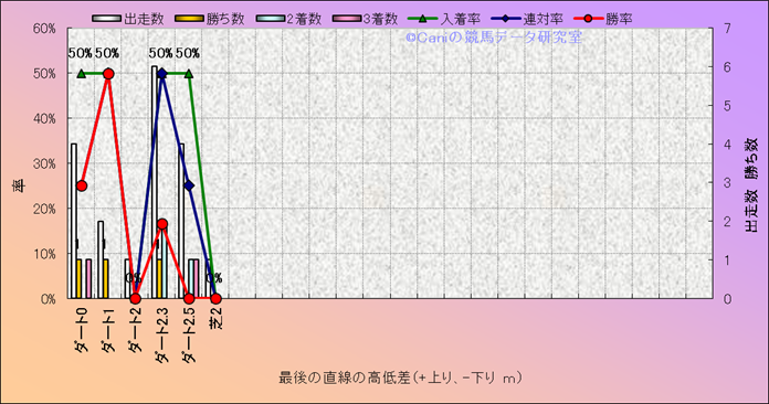 コース、最後の直線の高低差別成績(平地) |