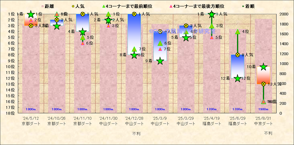 近10走 人気−着順-位置取りの推移 |