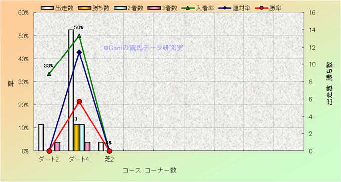 コース、コーナー数別成績(平地) |