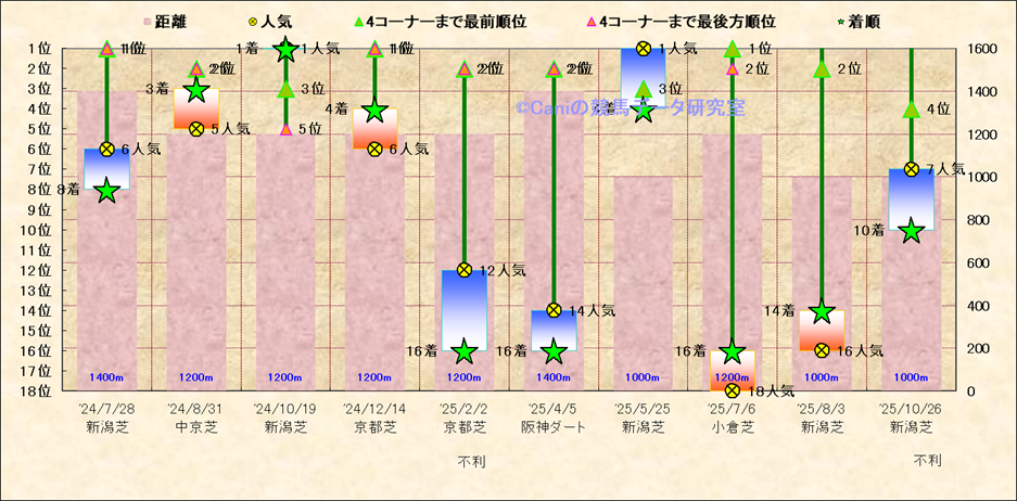 近10走 人気−着順-位置取りの推移 |