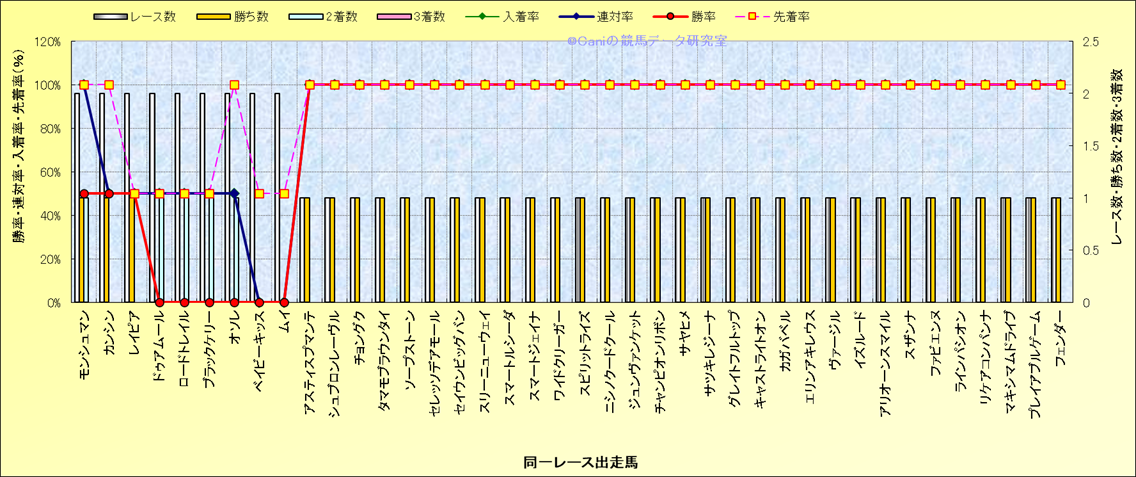 ライバル(相性)解析 同一レースに下記馬が出走した場合の成績とその馬に先着する先着率 |