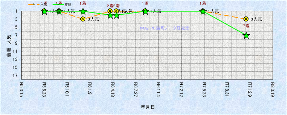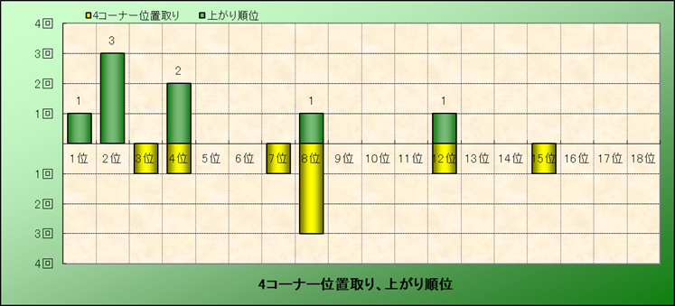 脚質解析 近20レースの4コーナーでの位置取りと上がり順位(頭数補正後) |